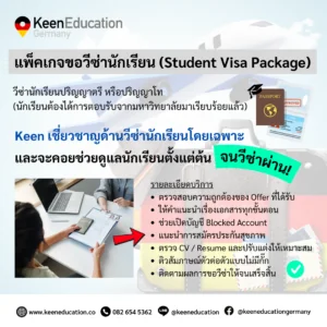 Keen Education Germany เราช่วยให้คุณเข้าใจทุกขั้นตอนตั้งแต่เริ่มต้นอย่างถูกต้อง ไม่ว่าจะเป็นการเตรียมตัว การสมัครเรียน การขอวีซ่า การหาที่พัก และการใช้ชีวิตจริงในเยอรมนี